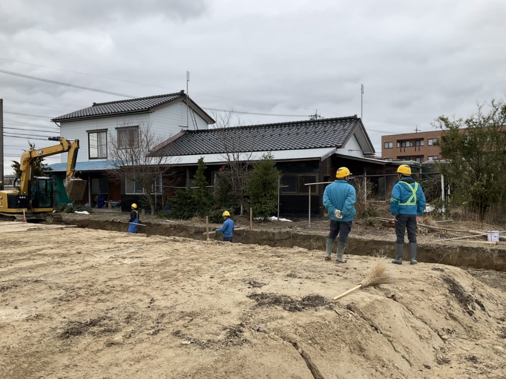 ◎砺波市内にある造成工事(VS側溝のための掘削作業)